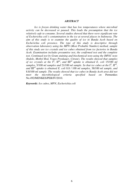 Ayu Radyan Sephani R., KUALITAS ES BATU DI KOTA BANDA ACEH DITINJAU DARI ASPEK MIKROBIOLOGIS. Banda Aceh Fakultas Kedokteran,2012