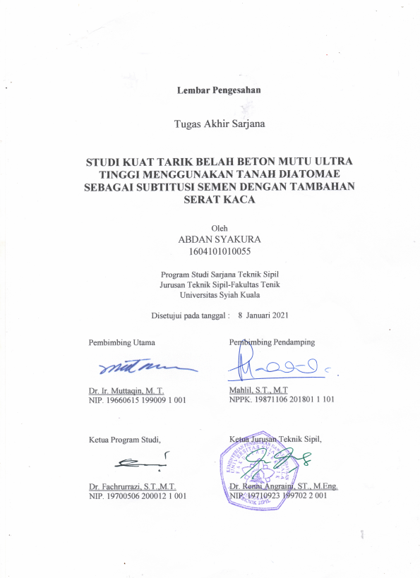 Baca Juga : STUDI KUAT TARIK BELAH BETON MUTU ULTRA TINGGI MENGGUNAKAN TANAH DIATOMAE SEBAGAI SUBSTITUSI SEMEN DENGAN PENAMBAHAN SERAT POLYPROPYLENE (MAFAZI RAMADHAN AL KHAIRI, 2021)