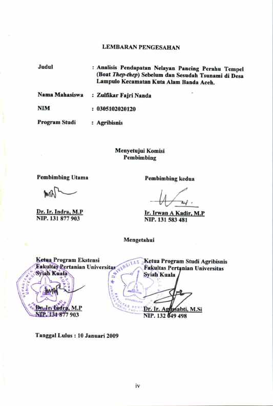 Zulfikar Fajri Nanda, ANALISIS PENDAPATAN NELAYAN PANCING PERAHU TEMPEL (BOAT THEP-THEP) SEBELUM DAN SESUDAH TSUNAMI DI DESA LAMPULO KECAMATAN KUTA ALAM BANDA ACEH. Banda Aceh Universitas Syiah Kuala,2021