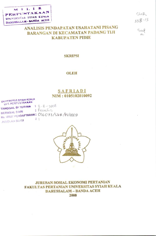 Baca Juga : ANALISIS PENDAPATAN USAHATANI PISANG BARANGAN DI KECAMATAN PADANG TIJI KABUPATEN PIDIE (Safriadi, 2021)