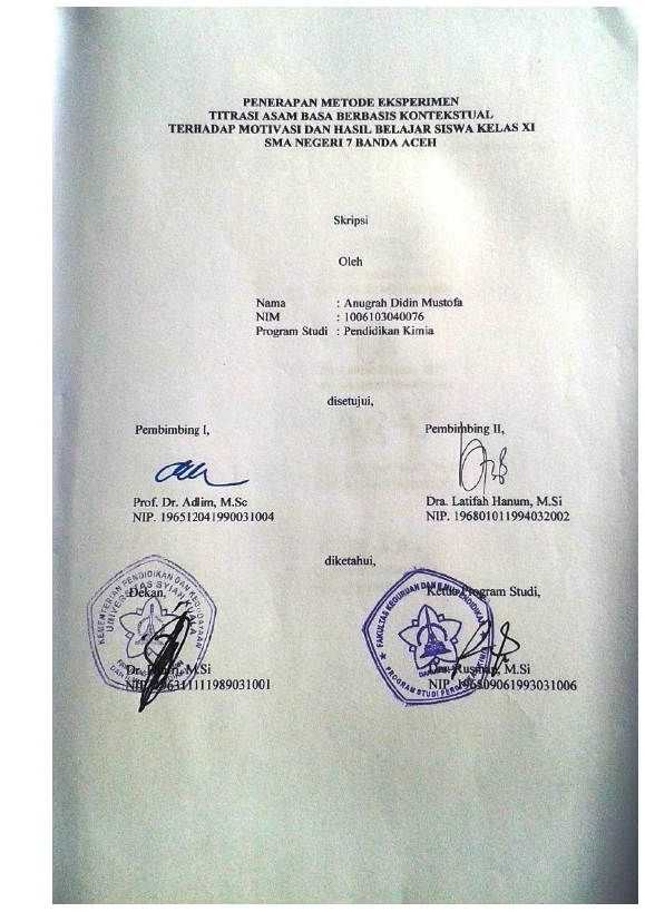anugrah didin mustofa, PENERAPAN METODE PRAKTIKUM TITRASI ASAM BASA BERBASIS KONTEKSTUAL TERHADAP MOTIVASI DAN HASIL BELAJAR SISWA KELAS XI SMA NEGERI 7 BANDA ACEH. Banda Aceh Fakultas Keguruan dan Ilmu Pendidikan,2014