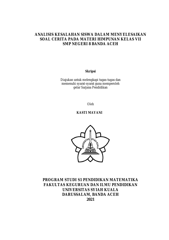 Baca Juga : ANALISIS KESALAHAN SISWA DALAM MENYELESAIKAN SOAL CERITA PADA MATERI HIMPUNAN KELAS VII SMPN 8 BANDA ACEH (Kasti Mayani, 2021)