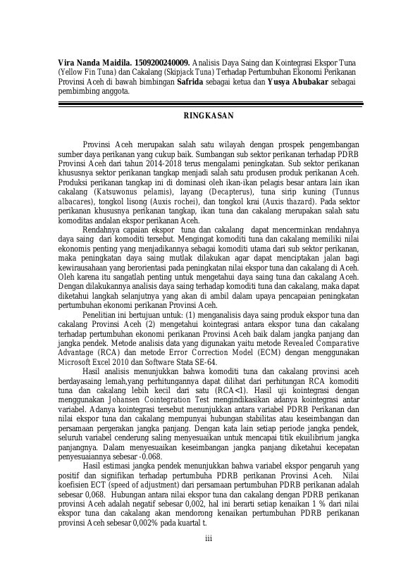 Baca Juga : ANALISIS DAYA SAING DAN INTEGRASI PASAR IKAN TUNA PROVINSI ACEH DI PASAR INTERNASIONAL (Linda Santri, 2021)