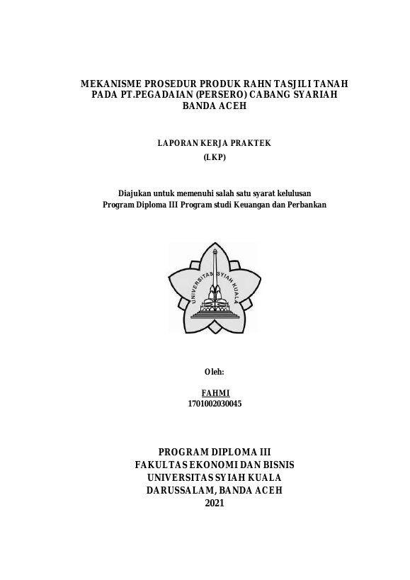 Fahmi, MEKANISME PROSEDUR PRODUK RAHN TASJILI TANAH PADA PT.PEGADAIAN (PERSERO) CABANG SYARIAH BANDA ACEH. Banda Aceh Universitas Syiah Kuala,2021