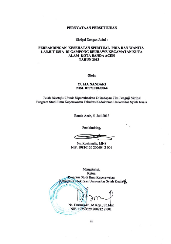 Baca Juga : GAMBARAN SPIRITUALITAS DAN KECEMASAN PADA FRAIL ELDERLY DI KOTA BANDA ACEH (Najwatul Syiffani, 2025)