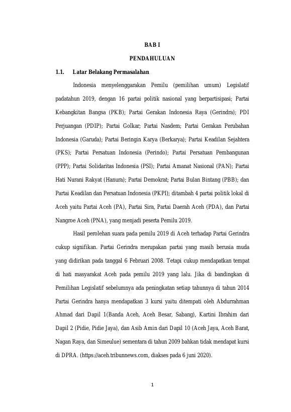 SALMAH, STRATEGI POLITIK PARTAI GERINDRA DALAM PEROLEHAN KURSI DPRA DI PEMILIHAN LEGISLATIF TAHUN 2019 (STUDI PENELITIAN DI DPD PARTAI GERINDRA PROVINSI ACEH). Banda Aceh Universitas Syiah Kuala,2021