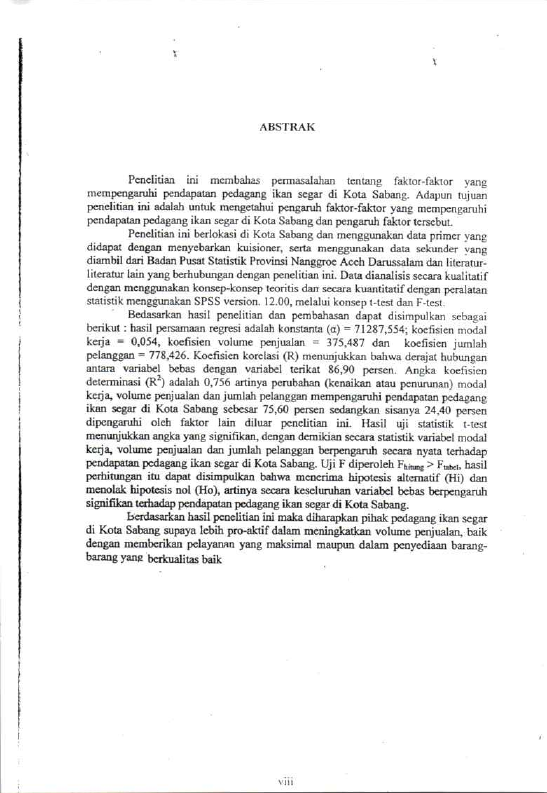 Desi syahputri, ANALISIS FAKTOR-FAKTOR YANG MEMPENGARUHI DE% PENDAPATAN PEDAGANG IKAN SEGAR DI KOTA SABANG. Banda Aceh Universitas Syiah Kuala,2021