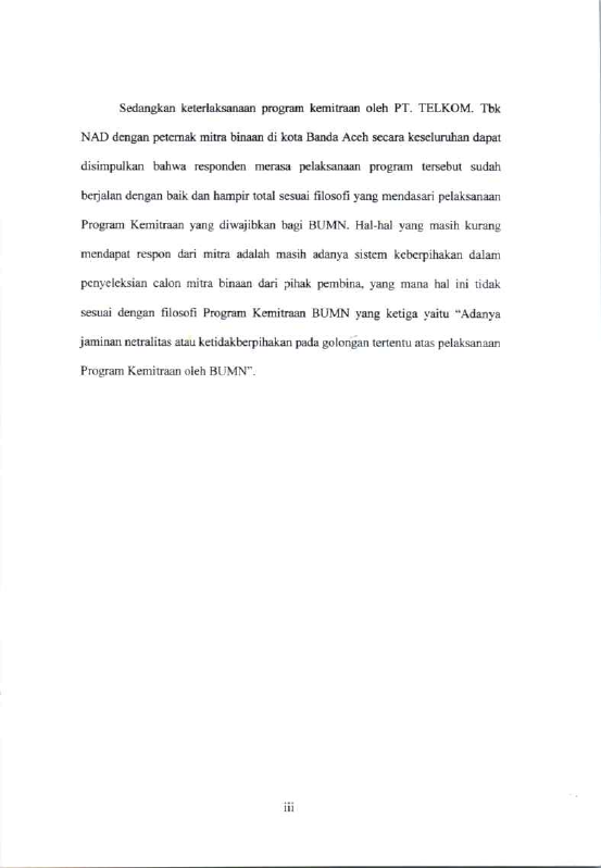 Rika Wulandari, RESPON PENGUSAHA KECIL BIDANG PETERNAKAN TERHADAP PROGRAM KEMITRAAN PADA PT. TELKOM. TBK NAD DI KOTA BANDA ACEH. Banda Aceh Universitas Syiah Kuala,2021