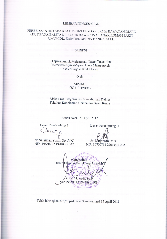 Baca Juga : PERBEDAAN ANTARA STATUS GIZI DENGAN LAMA RAWATAN DIARE AKUT PADA BALITA DI RUANG RAWAT INAP ANAK RUMAH SAKIT UMUM DR. ZAINOEL ABIDIN BANDA ACEH (misbah, 2014)