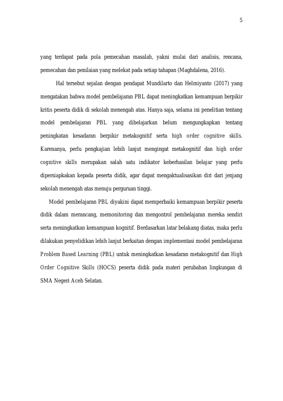 Baca Juga : PENERAPAN MODEL PEMBELAJARAN PROBLEM BASED LEARNING DALAM UPAYA MENINGKATKAN HASIL BELAJAR DAN METAKOGNITIF SISWA PADA MATERI EKOSISTEM DI SMA NEGERI KABUPATEN BIREUEN (MUHAMMAD RIFQI, 2019)