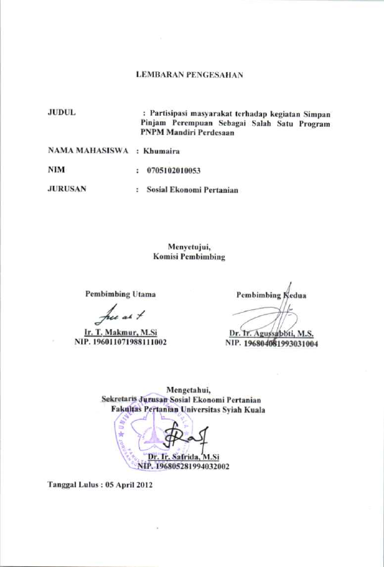 Baca Juga : PERSEPSI MASYARAKAT TERHADAP PROGRAM NASIONAL PEMBERDAYAAN MASYARAKAT (PNPM) MANDIRI DESA LAMTANJONG KECAMATAN SUKA MAKMUR ACEH BESAR (T. Ismunandar, 2015)