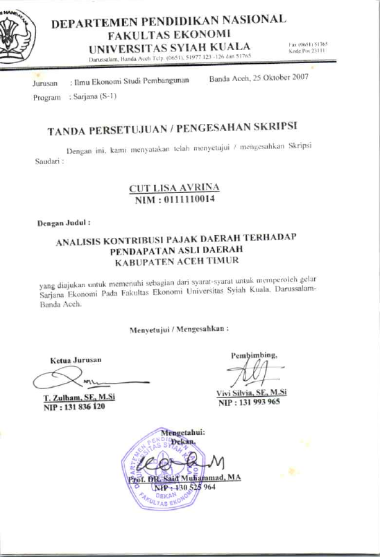 Cut Lisa Avrina, ANALISIS KONTRIBUSI PAJAK DAERAH TERHADAP PENDAPATAN ASLI DAERAH KABUPATEN ACEH TIMUR. Banda Aceh Universitas Syiah Kuala,2021