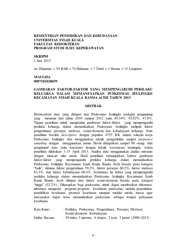 Baca Juga : GAMBARAN FAKTOR-FAKTOR YANG MEMPENGARUHI PERILAKU KELUARGA DALAM MEMANFAATKAN PUSKESMAS JEULINGKE KECAMATAN SYIAH KUALA BANDA ACEH TAHUN 2013 (Mauliza, 2022)