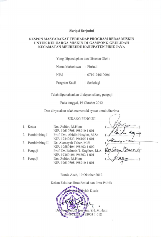 Baca Juga : RESPON MASYARAKAT TERHADAP PENYALURAN BERAS MISKIN (RASKIN) DI KECAMATAN GLUMPANG TIGA KABUPATEN PIDIE (Nurlailatul Qadri, 2021)