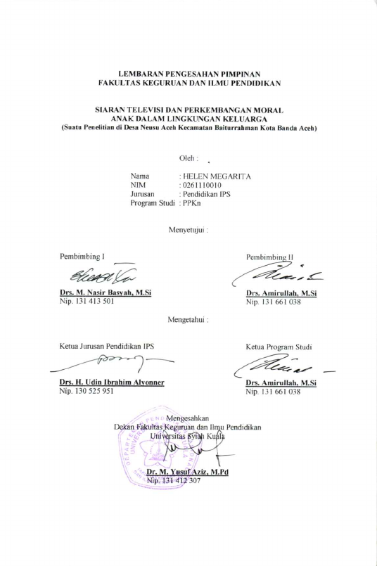 Helen Megarita, SIARAN TELEVISI DAN PERKEMBANGAN MORAL ANAK DALAM LINGKUNGAN KELUARGA (SAT PENELITIAN DI DESA NEUSU ACEH KECAMATAN BAITURRAHMAN KOTA BANDA ACEH). Banda Aceh Universitas Syiah Kuala,2021