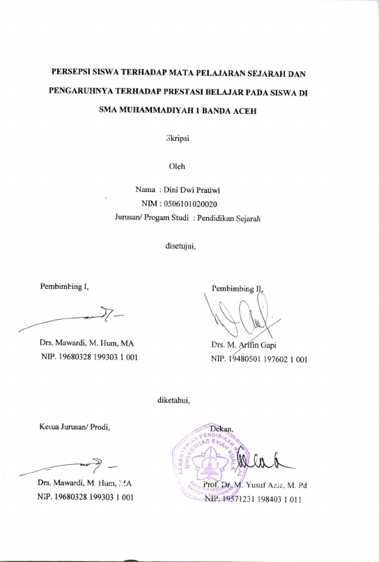 Baca Juga : HUBUNGAN PERSEPSI SISWA PADA MATA PELAJARAN DENGAN PRESTASI BELAJAR FISIKA DI SMAN 4 BANDA ACEH (Abdul Arif, 2016)