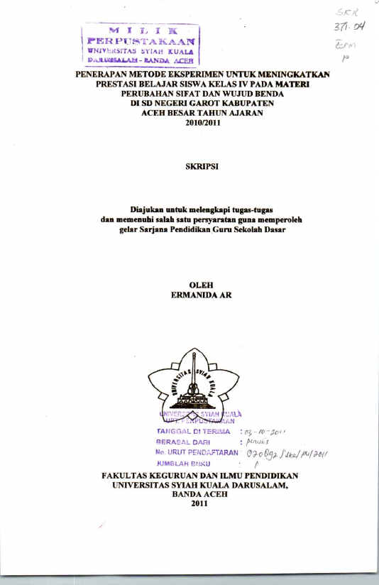Baca Juga : “PENGGUNAAN METODE EKSPERIMEN TERHADAP HASIL BELAJAR SISWA PADA MATERI PERUBAHAN SIFAT BENDA DI KELAS V SD NEGERI 71 BANDA ACEH” (hijrah kafrawi nst, 2014)