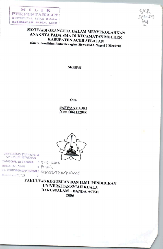 Baca Juga : KECENDERUNGAN ORANGTUA MELANJUTKAN PENDIDIKAN ANAK KE MADRASAH TSANAWIYAH NEGERI MEUREUDU KABUPATEN PIDIE JAYA (Rizky Suryandi, 2014)
