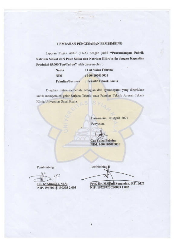 Baca Juga : PRARANCANGAN PABRIK NATRIUM SILIKAT DARI PASIR SILIKA DAN NATRIUM HIDROKSIDA DENGAN KAPASITAS PRODUKSI 50.000 TON/TAHUN (MUHAMMAD HARIS HIDAYAT, 2023)
