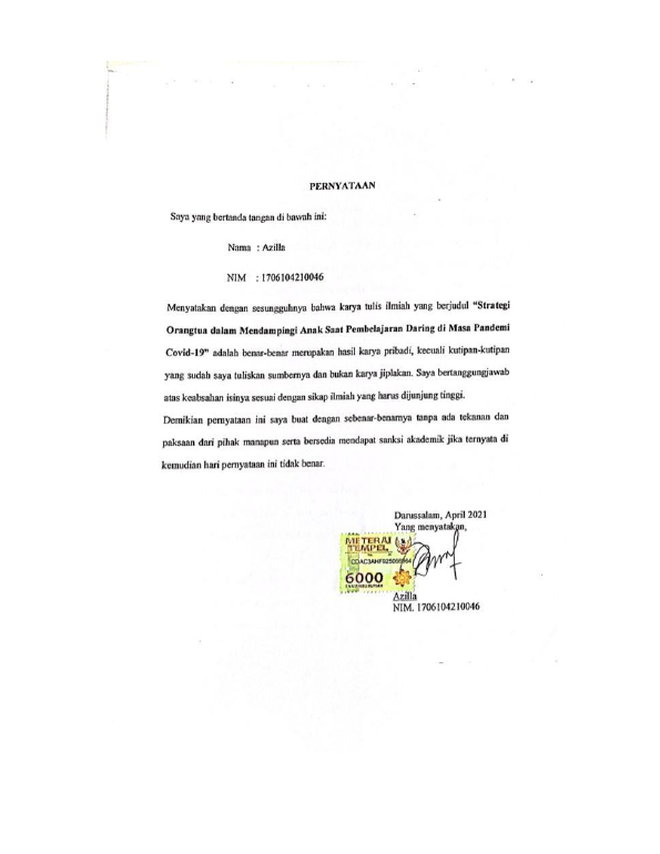 Baca Juga : KENDALA ORANG TUA MENDAMPINGI ANAK DALAM PEMBELAJARAN DARING SELAMA PANDEMI COVID-19 DI KELAS V SDN 22 BANDA ACEH (EMILIA NAJLI, 2021)