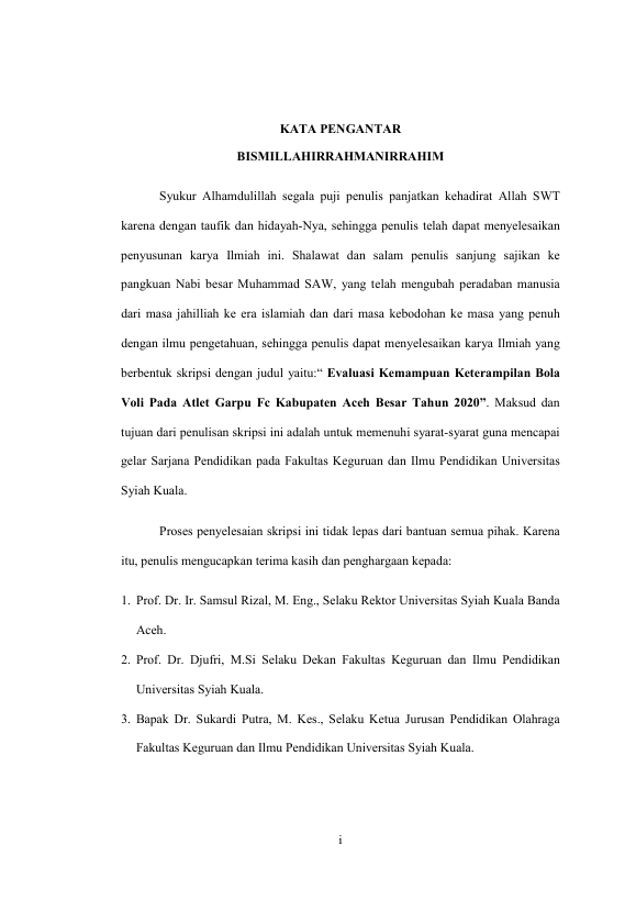 PUTRI NAZILA, EVALUASI KEMAMPUAN KETERAMPILAN BOLA VOLI PADA ATLET GARPU FC KABUPATEN ACEH BESAR TAHUN 2020. Banda Aceh Universitas Syiah Kuala,2021