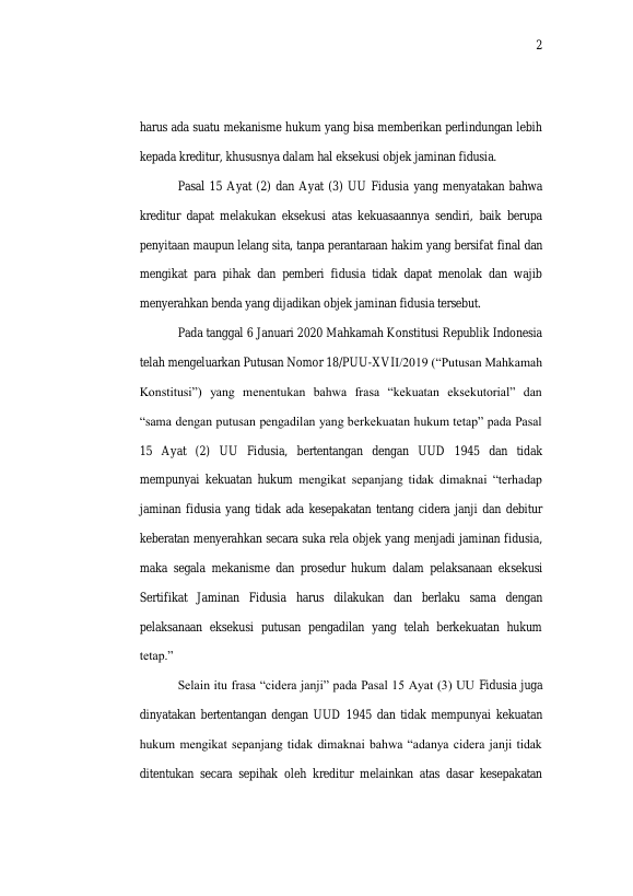 Baca Juga : IMPLIKASI PUTUSAN MAHKAMAH KONSTITUSI NOMOR 18/PUU-XVII/2019 TERHADAP EKSEKUSI JAMINAN FIDUSIA (Izra Fadiya, 2021)