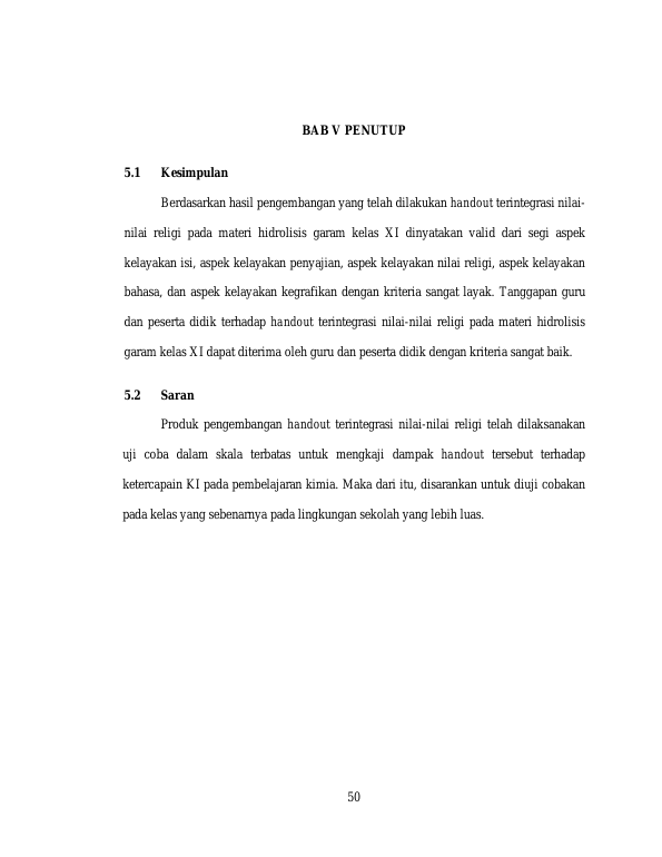 Baca Juga : PENGEMBANGAN HANDOUT TERINTEGRASI NILAI-NILAI KARAKTER ISLAMI PADA MATERI STRUKTUR ATOM UNTUK SMA\MA (CUT RADHILAH MUTIA, 2022)