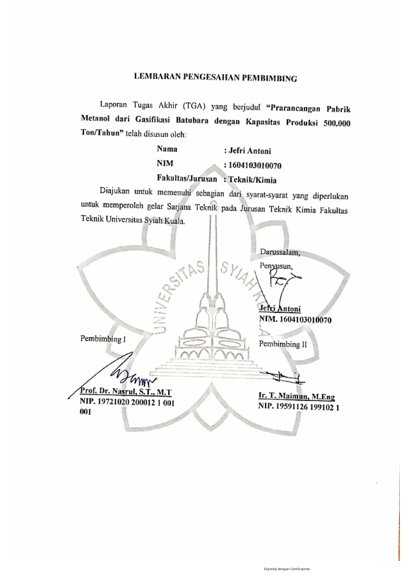 Baca Juga : PRARANCANGAN PABRIK METANOL DARI GASIFIKASI BATUBARA DENGAN KAPASITAS PRODUKSI 500.000 TON/TAHUN (MUHAMMAD FADLI, 2021)