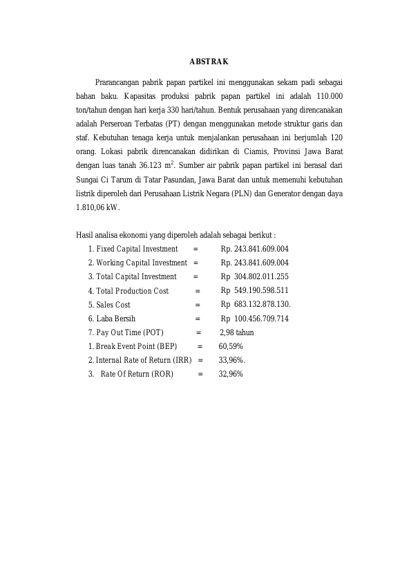 Baca Juga : PRARANCANGAN PABRIK PAPAN PARTIKEL DARI SEKAM PADI DAN PHENOL FORMALDEHID DENGAN KAPASITAS PRODUKSI 110.000 TON/TAHUN (UTARI HADI NINGSIH, 2021)