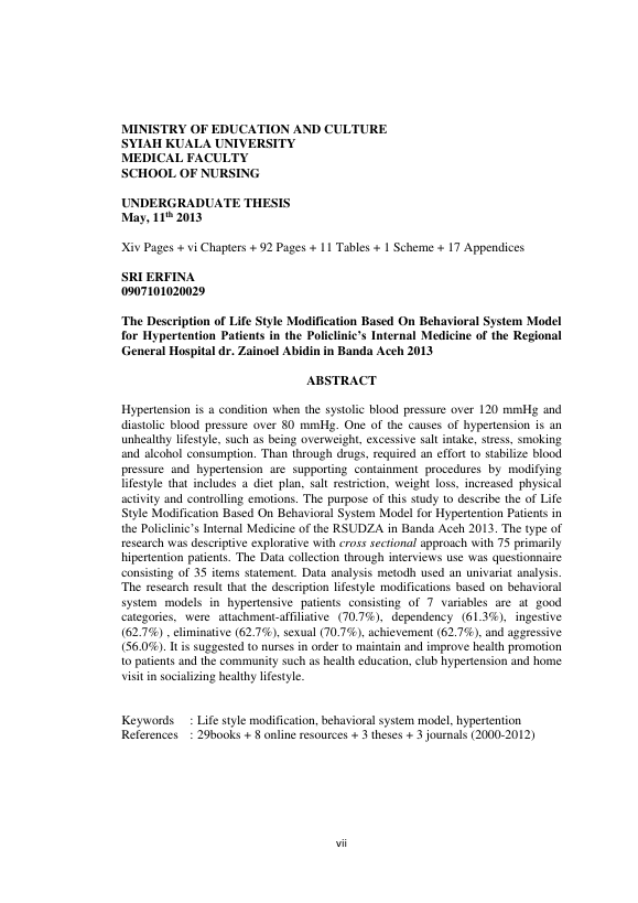 Baca Juga : HUBUNGAN SELF MANAGEMENT DENGAN KUALITAS HIDUP PASIEN HIPERTENSI DI POLIKLINIK PENYAKIT DALAM RUMAH SAKIT UMUM DAERAH DR. ZAINOEL ABIDIN BANDA ACEH (, 2015)