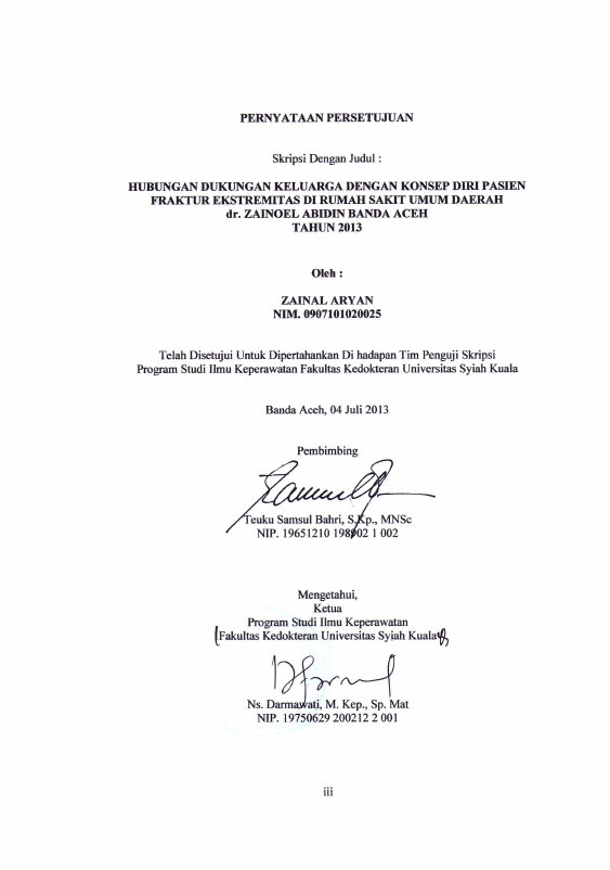 Baca Juga : HUBUNGAN PEMASANGAN FIXASI DENGAN KONSEP DIRI PADA PASIEN FRAKTUR DI RUAN GRAWAT BEDAH BADAN PELAYANAN KESEHATAN RUMAH SAKIT UMUM DR. ZAINOEL ABIDIN BANDA ACEH TAHUN 2007 (Wardani, 2023)