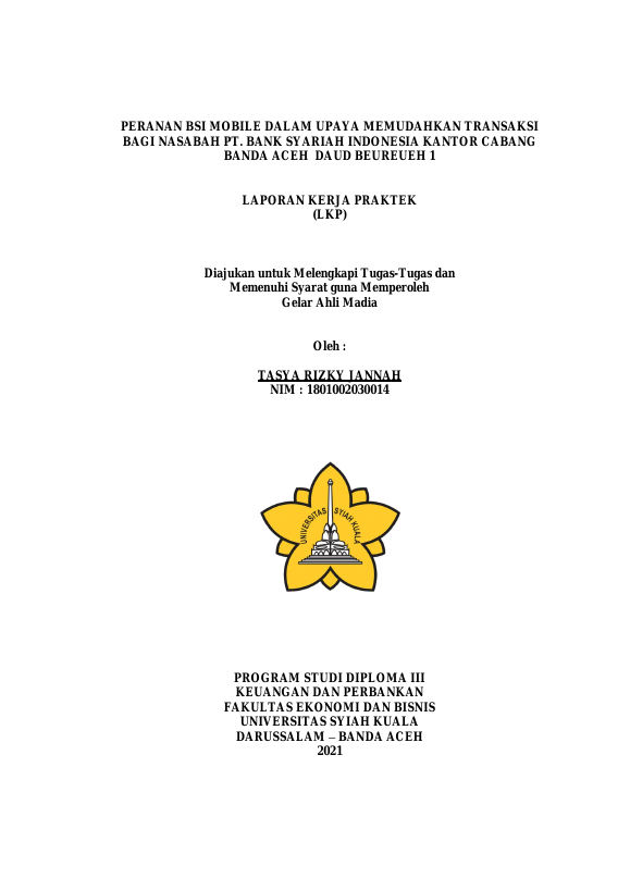 Tasya Rizky Jannah, PERANAN BSI MOBILE DALAM UPAYA MEMUDAHKAN TRANSAKSI BAGI NASABAH PT. BANK SYARIAH INDONESIA KANTOR CABANG BANDA ACEH DAUD BEUREUEH 1. Banda Aceh Universitas Syiah Kuala,2021