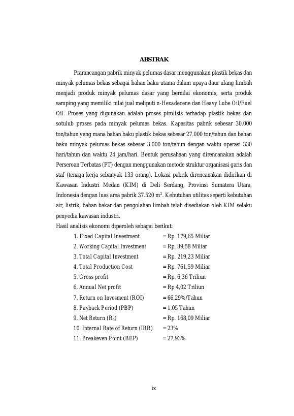 Baca Juga : PRARANCANGAN PABRIK PELUMAS DARI MINYAK PELUMAS BEKAS DENGAN KAPASITAS PRODUKSI 24.000 TON/TAHUN (Iskandar, 2024)