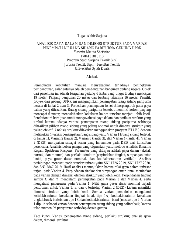 Baca Juga : ANALISIS GAYA DALAM DAN DIMENSI STRUKTUR PADA VARIASI JARAK KOLOM GEDUNG DPRK (HAURANA AIMAN, 2021)