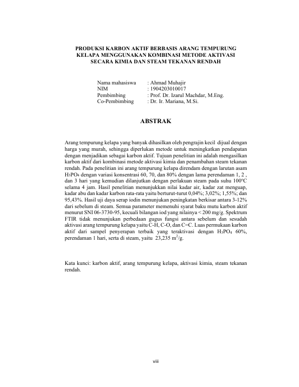 Baca Juga : PEMBUATAN KARBON AKTIF DARI TEMPURUNG KELAPA SAWIT (ELAIES GUINEENSIS JACQ.) MENGGUNAKAN NATRIUM BIDROKSIDA DAN GAS NITROGEN SEBAGAI AKTIVATOR (Wahyu Rinaldi, 2024)