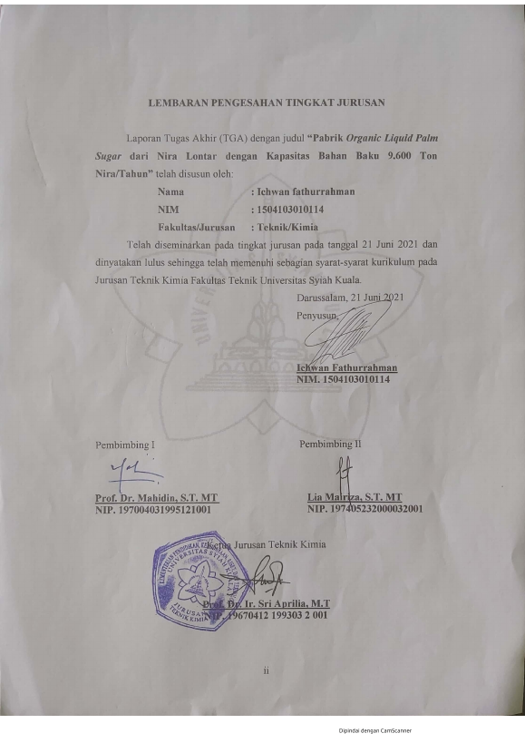 Baca Juga : PRARANCANGAN PABIK ORGANIC LIQUID PALM SUGAR DARI NIRA LONTAR DENGAN KAPASITAS BAHAN BAKU 9.600 TON NIRA/TAHUN (Muhammad Furqan, 2022)