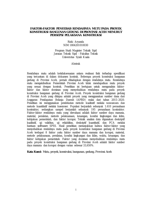 Baca Juga : FAKTOR-FAKTOR PENYEBAB RENDAHNYA MUTU PADA PROYEK KONSTRUKSI BANGUNAN GEDUNG DI PROVINSI ACEH MENURUT PERSEPSI PELAKSANA KONSTRUKSI (Rizki Aryanda, 2021)