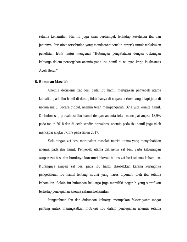 Baca Juga : FAKTOR YANG MEMPENGARUHI PREVALENSI ANEMIA DEFISIENSI ZAT BESI PADA IBU HAMIL DI WILAYAH KERJA PUSKESMAS INGIN JAYA KABUPATEN ACEH BESAR (DESY RAHMIYANTI, 2018)