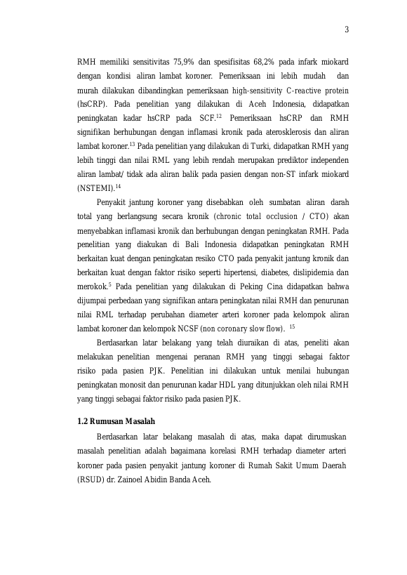 Malahayati, HUBUNGAN RASIO MONOSIT-HIGH DENSITY LIPOPROTEIN TERHADAP DIAMETER ARTERI KORONER PADA PASIEN PENYAKIT JANTUNG KORONER. Banda Aceh Universitas Syiah Kuala,2021