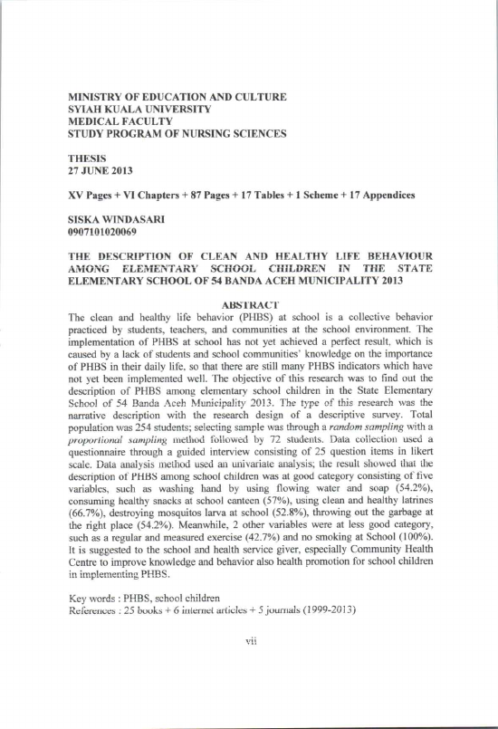 Baca Juga : GAMBARAN PERILAKU HIDUP BERSIH DAN SEHAT PADA ANAK USIA SEKOLAH DI SEKOLAH DASAR NEGERI 54 KOTA BAND A ACEH TAHUN 2013 (Siska Windasari, 2021)