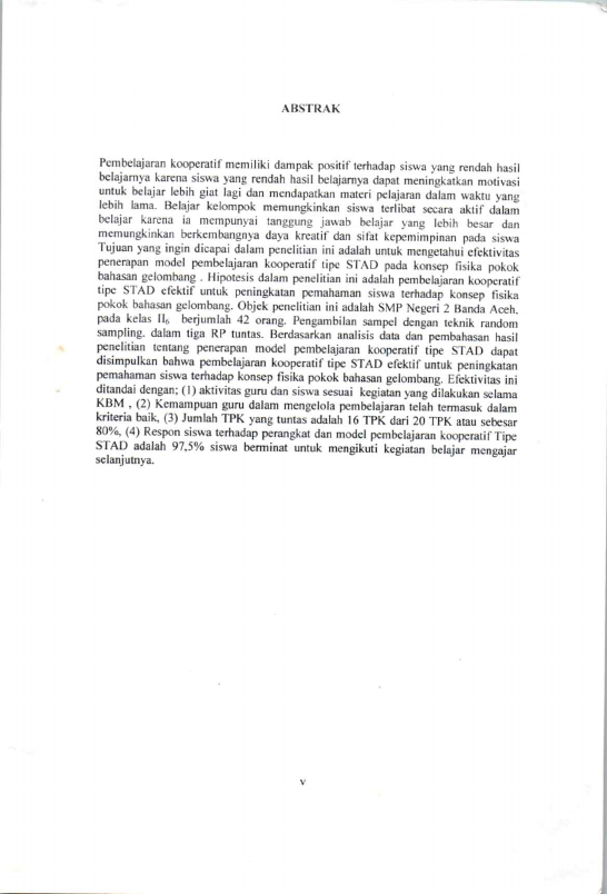 Mauliana A, EFEKTIVITAS PEMBELAJARAN KOOPERATIF TIPE STUDENT TEAM ACHIEVEMENT DIVISION DA LAM UPAYA MENINGKATKAN HASIL BELAJAR FISIKA DI SMP NEGERI 2 BANDA ACEH. Banda Aceh Universitas Syiah Kuala,2021