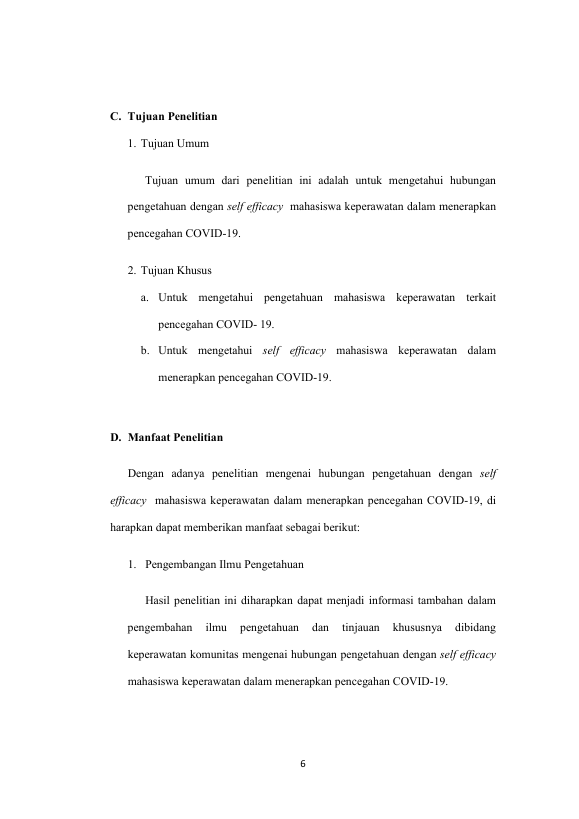 NABILA YUSSAM VIRA, HUBUNGAN PENGETAHUAN DENGAN SELF EFFICACY MAHASISWA KEPERAWATAN DALAM MENERAPKAN PENCEGAHAN COVID-19. Banda Aceh Universitas Syiah Kuala,2021