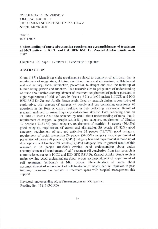 Baca Juga : PERBANDINGAN BEBAN KERJA DENGAN STRES KERJA PERAWAT DI RUANG IGD DAN RUANG ICU RSUD DR. ZAINOEL ABIDIN BANDA ACEH (Violita Aprilyana, 2016)