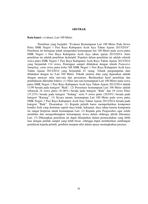 Baca Juga : EVALUASI KEMAMPUAN LARI 100 METER PADA SISWA PUTRA SMP NEGERI 2 SIMEULUE TIMUR TAHUN PELAJARAN 2013/2014 (Kasanuddin, 2014)