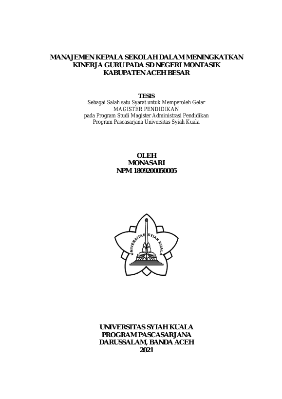 Baca Juga : MANAJEMEN KEPALA SEKOLAH DALAM MENINGKATKAN KINERJA GURU PADA SD NEGERI MONTASIK KABUPATEN ACEH BESAR (Monasari, 2021)