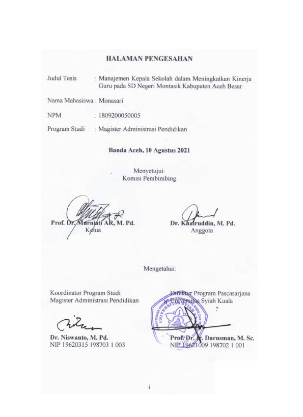 Baca Juga : MANAJEMEN KEPALA SEKOLAH DALAM MENINGKATKAN KINERJA GURU PADA SD NEGERI MONTASIK KABUPATEN ACEH BESAR (Monasari, 2021)