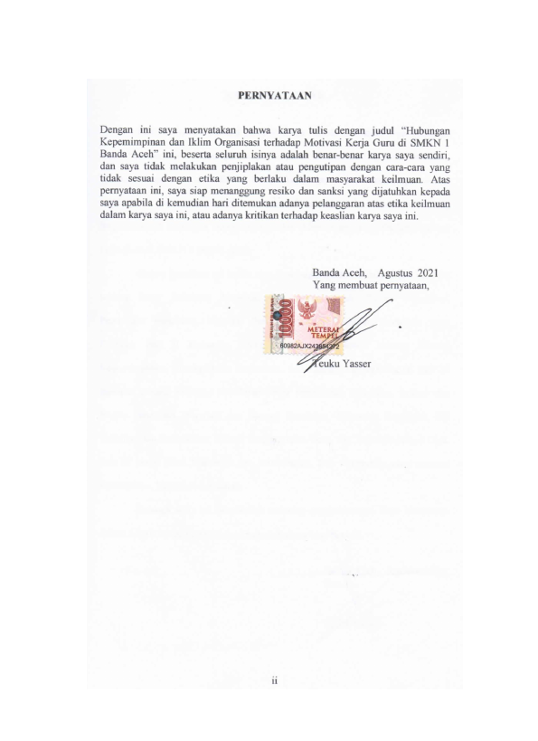 Baca Juga : PENGARUH KOMPETENSI, MOTIVASI, IKLIM ORGANISASI DAN BUDAYA ORGANISASI TERHADAP KEPUASAN KERJA SERTA DAMPAKNYA TERHADAP KINERJA GURU SEKOLAH MENENGAH ATAS NEGERI DI KOTA BANDA ACEH (IBNU SALDA, 2019)
