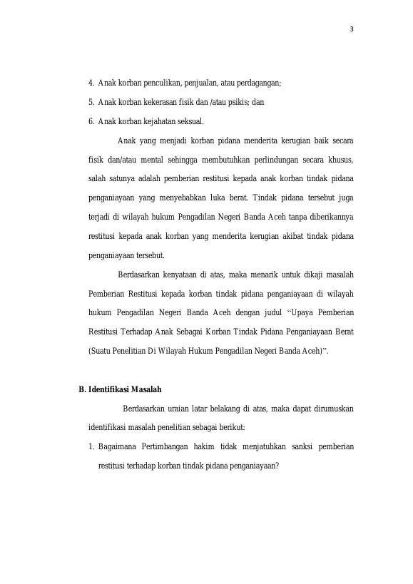 Baca Juga : PERLINDUNGAN HUKUM TERHADAP ANAK KORBAN PENGANIAYAAN BERAT YANG DILAKUKAN OLEH ANAK (SUATU PENELITIAN DI WILAYAH HUKUM PENGADILAN NEGERI BANDA ACEH) (ELLY SEPTIANI, 2018)