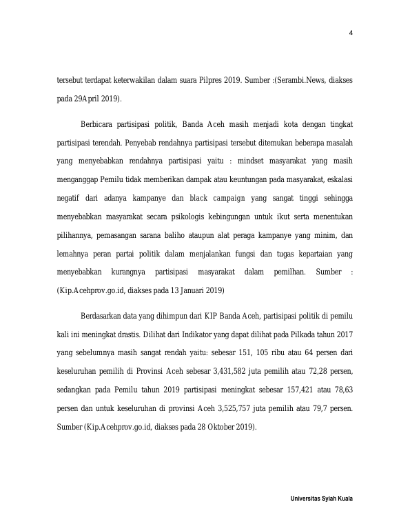 Baca Juga : PERAN KOMISI INDEPENDEN PEMILIHAN KOTA BANDA ACEH DALAM MENINGKATKAN PARTISIPASI POLITIK MASYARAKAT TERHADAP PILPRES TAHUN 2014 DI KOTA BANDA ACEH (ISMA CHAIRUNNISA, 2016)