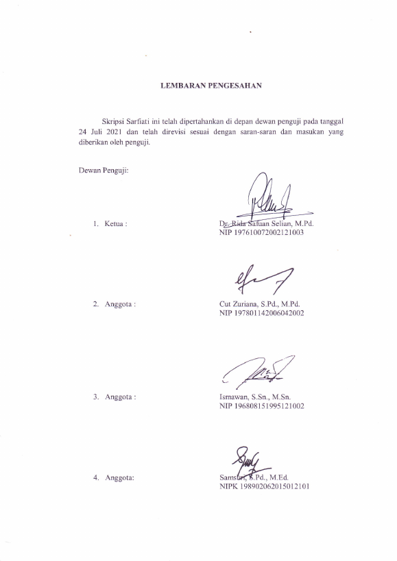 SARFIATI, MINAT DAN BAKAT SISWA SMP N 17 BANDA ACEH TERHADAP SENI TEATER PADA MATA PELAJARAN SENI BUDAYA. Banda Aceh Universitas Syiah Kuala,2021